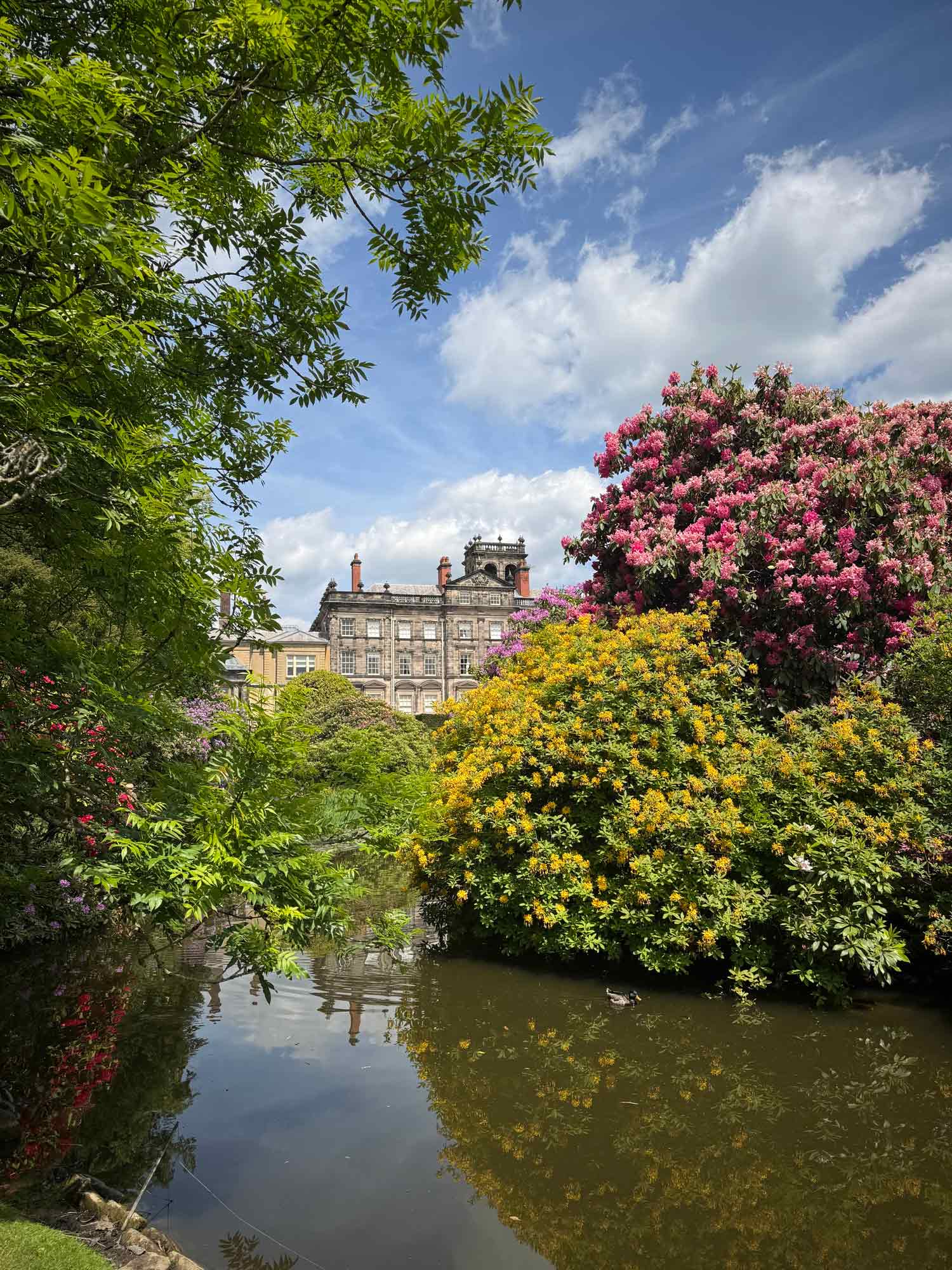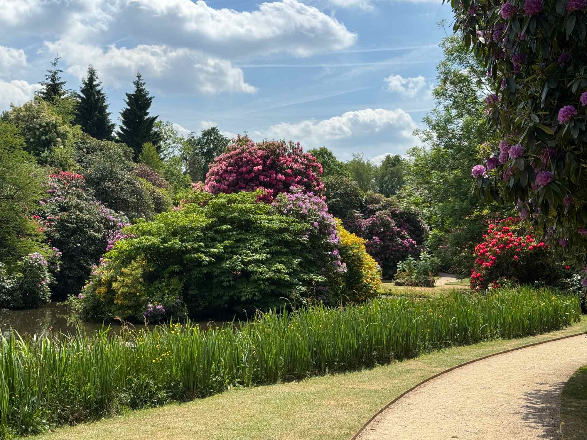 While the majority of gardens are woodland or enclosed, Bateman created a very welcome sunny centerpiece in the middle of his acreage with a lake, surrounded by rhododendron, which were just starting to bloom. These showed off the early introductions of rhododendrons from both America and the Caucasus.