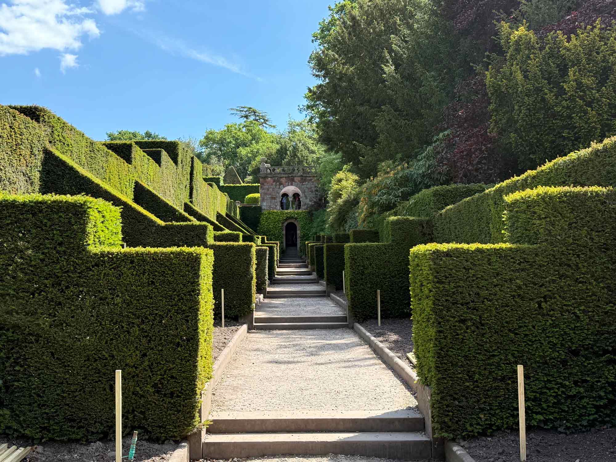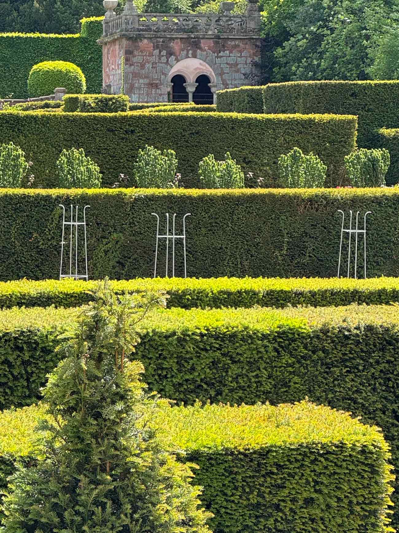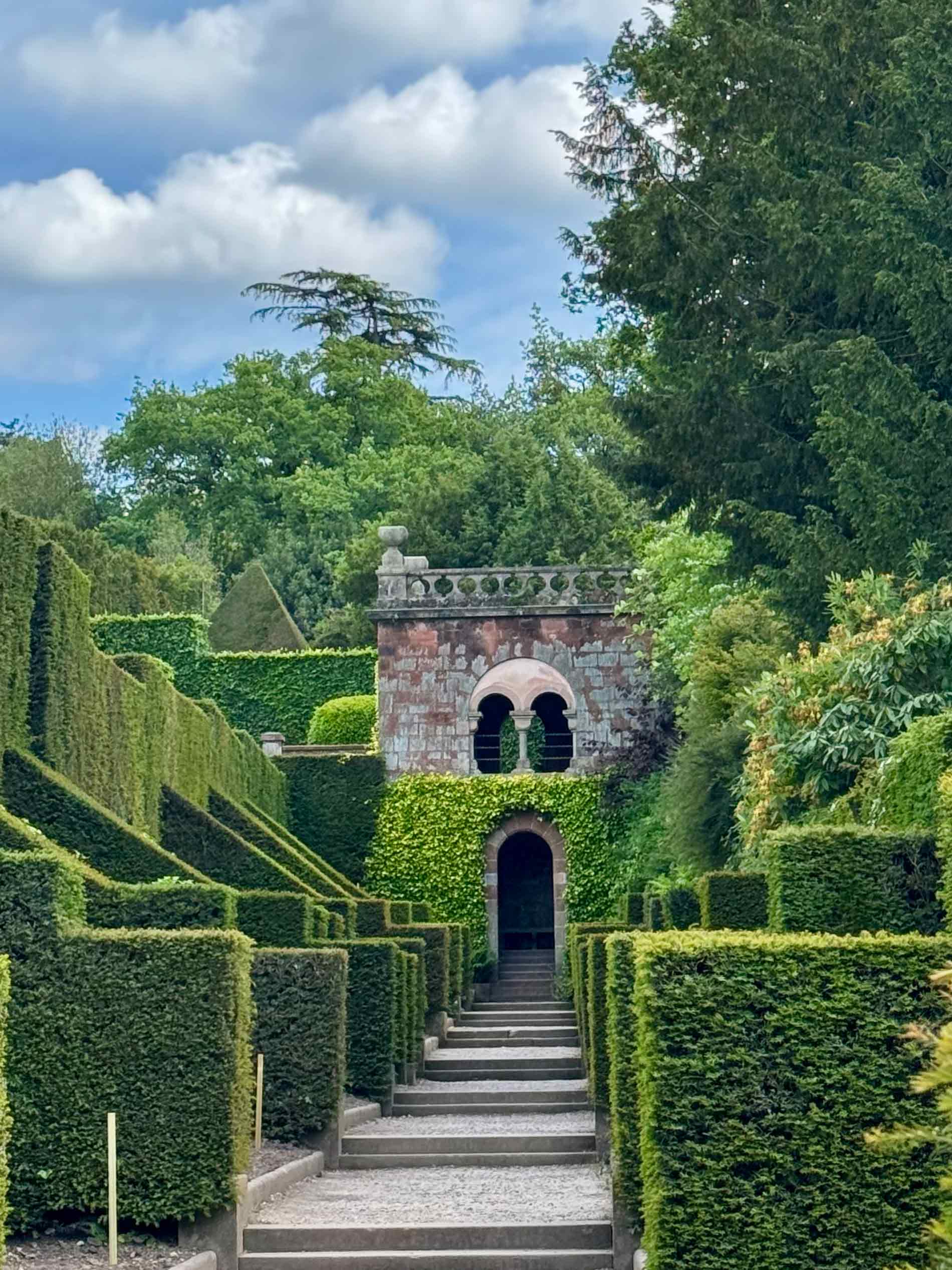 The Dahlia walk is the area that truly resonated for me; the elegant simplicity of the Yew battlements carried out Bateman’s thinking that each part of the garden must be its own separate world. At the point of every change in gradient, stepped buttresses of hedging jut out to meet the path and appear to support the hedges and enclose the terrace gardens above…a massive green “construction.”