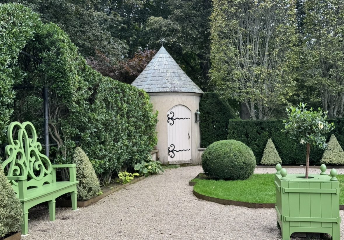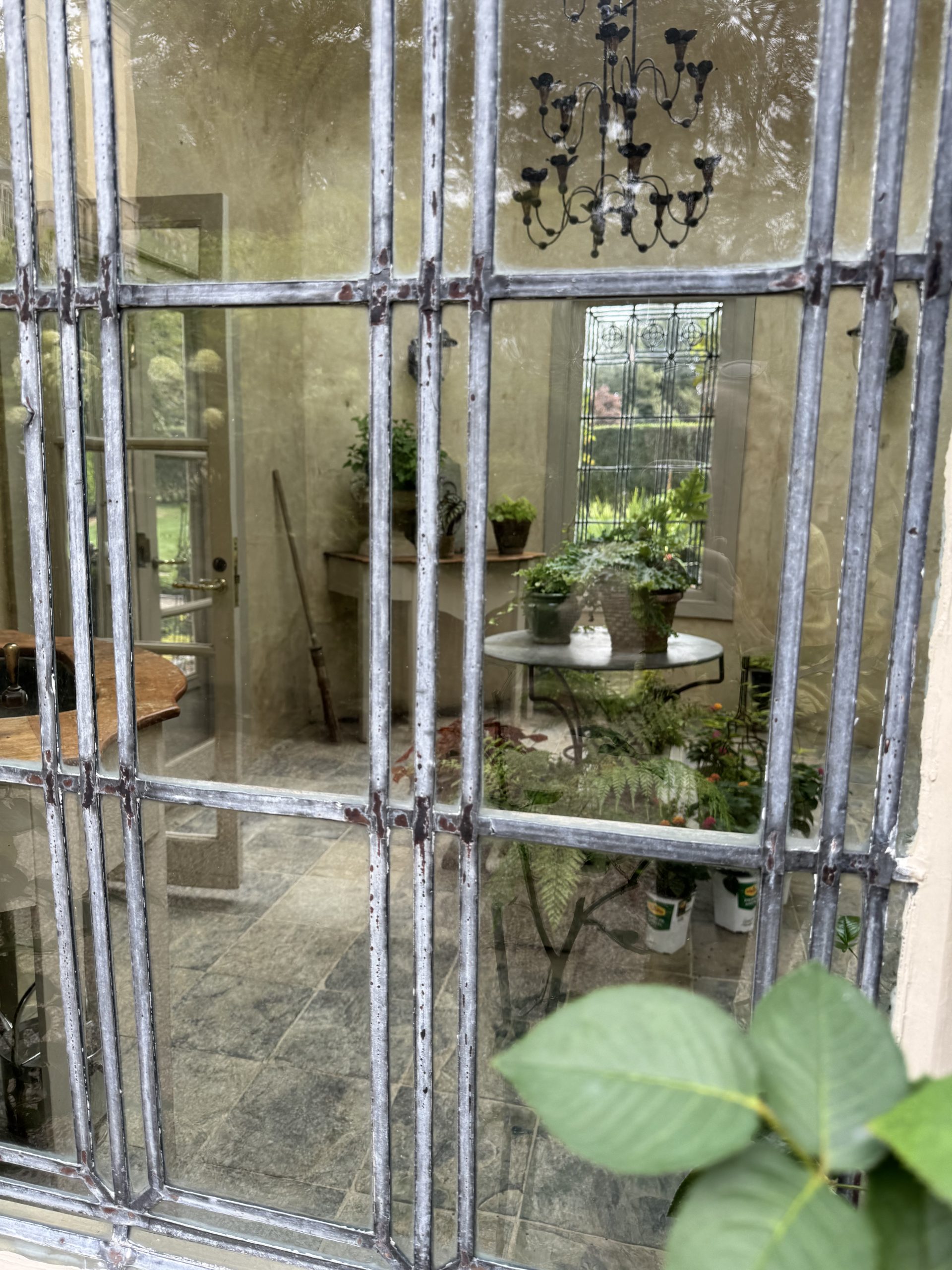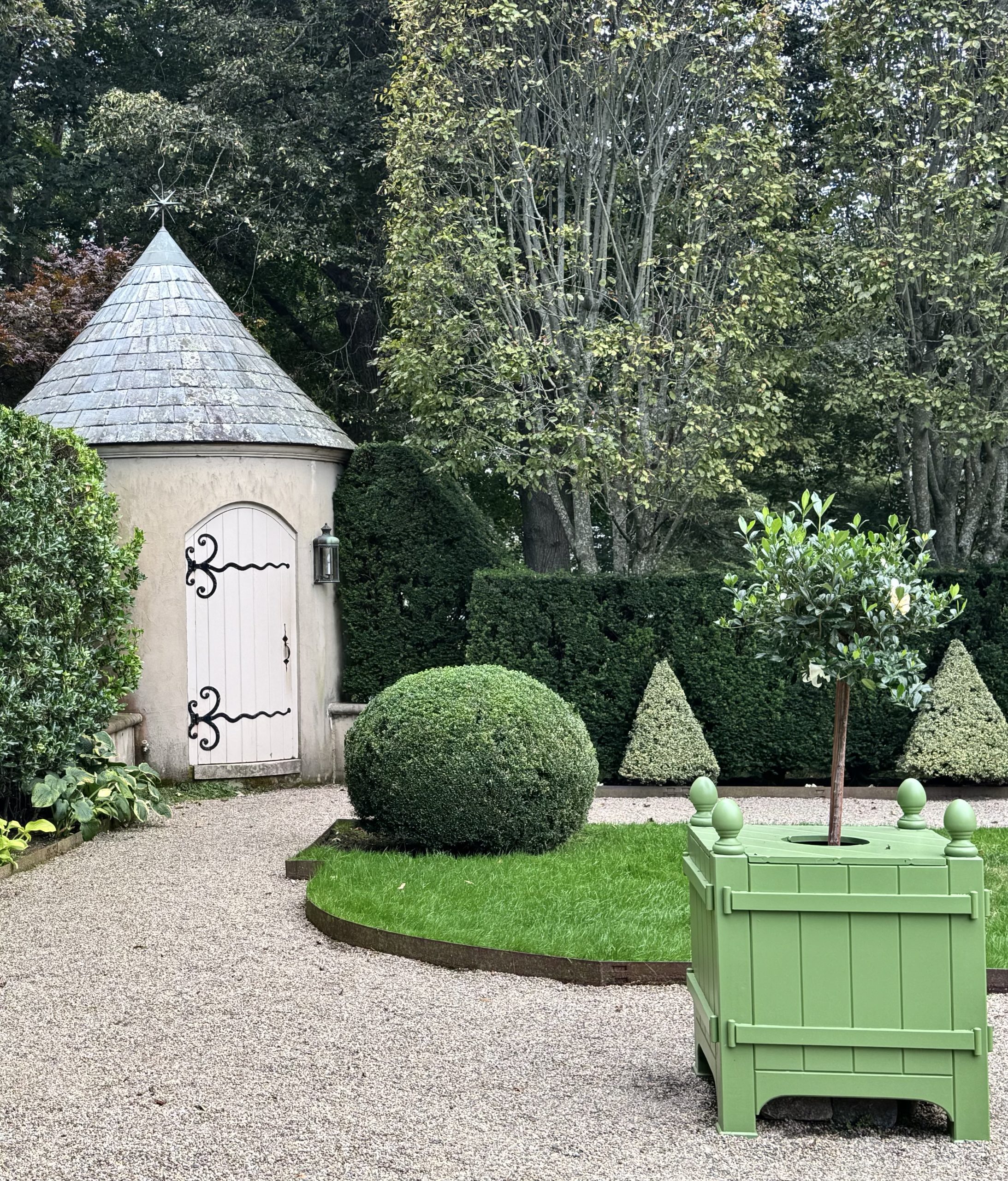 The Green and White Garden…centered by an “Orangerie” (actually a greenhouse, which serves well as both a work horse in the spring/summer as well as entertaining space in cooperating months).