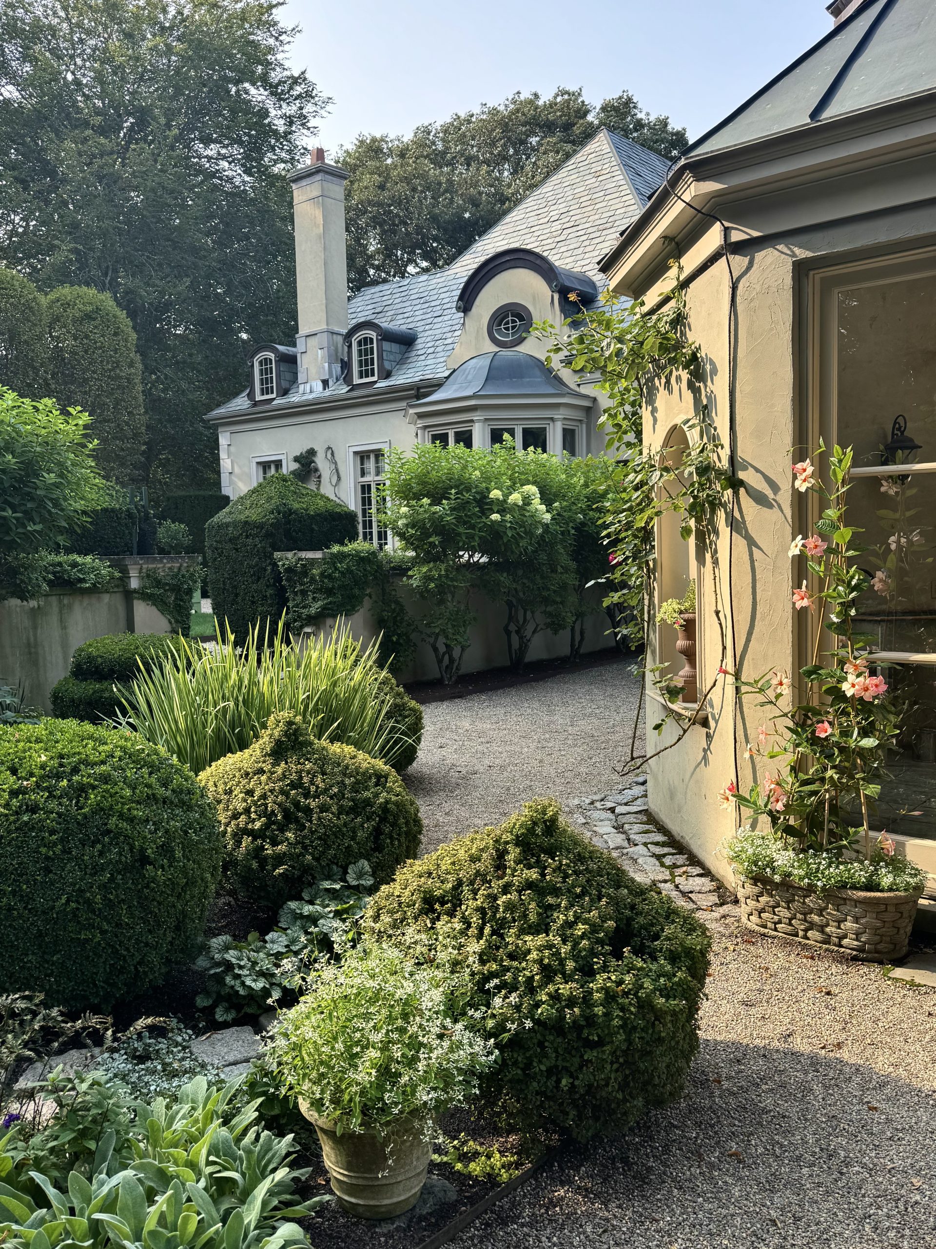 I’ll start this post not with my own words, but with kind observations from a visitor to Parterre over this past weekend during the garden tour….”The lovely French inspired design of the gardens, combined with a thoughtful placement of garden decor, pops of color with roses, hydrangeas, cosmos and dahlias and the various shades of green provided by hedges, ferns, and trees, truly delights the eye!” So without further ado, I’ll let you judge for yourself, with a bit of narrative where it might add a welcome note.