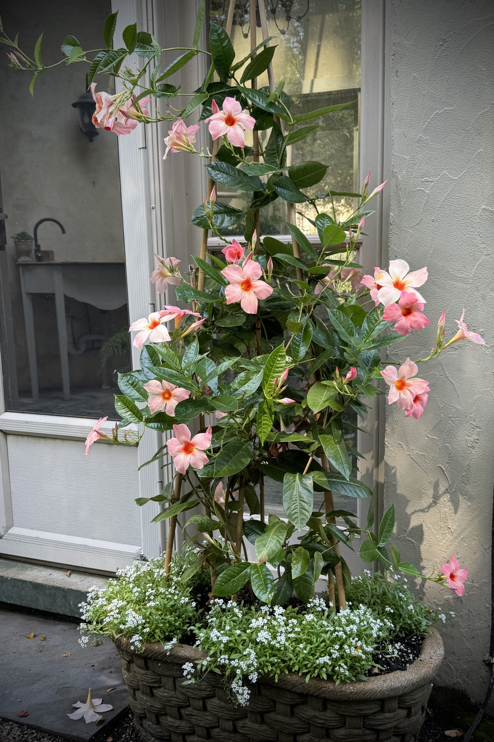 Delicate Angel Vine with the succulent, ‘Livingstone Daisy’, in the Orangerie’s niches.