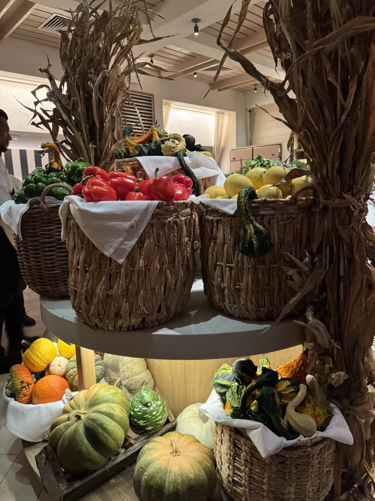 New York restaurants are not just about dining…their interiors often add immeasurably to the whole experience. Avra is one case in point…adding a fall vegetable scene as well as fresh fish in a large ice display (not featured)!