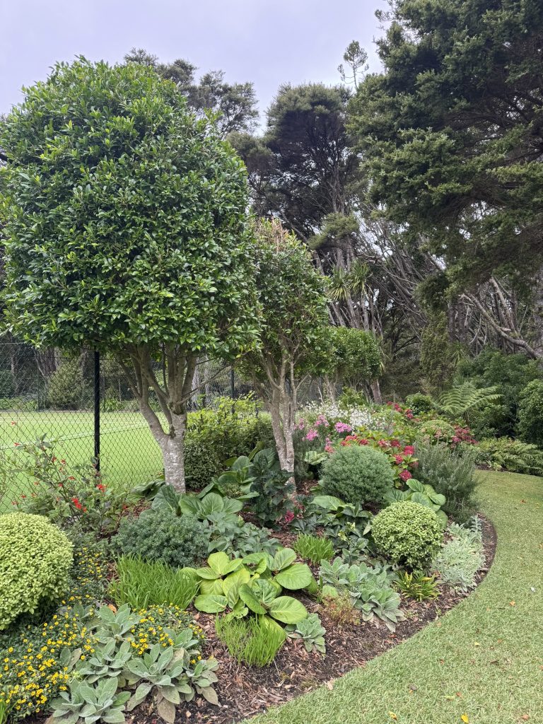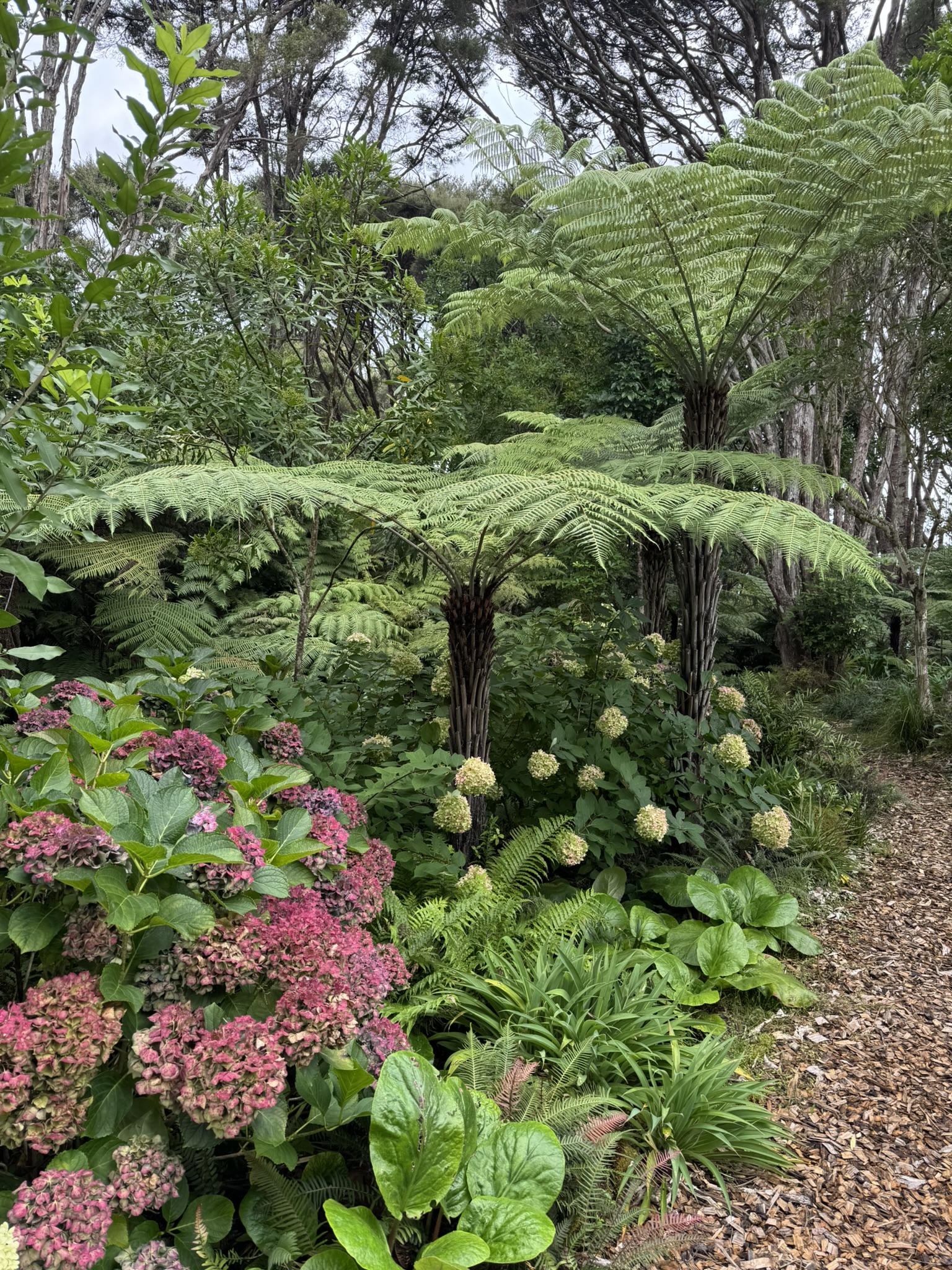 I loved the elegant Auckland silver fern sharing a bed with a hydrangea that would be happy in Newport…and notice that clean wood chip path!