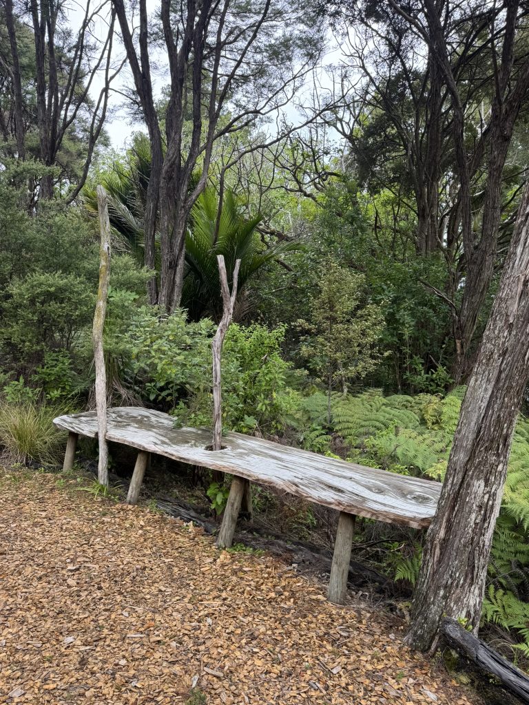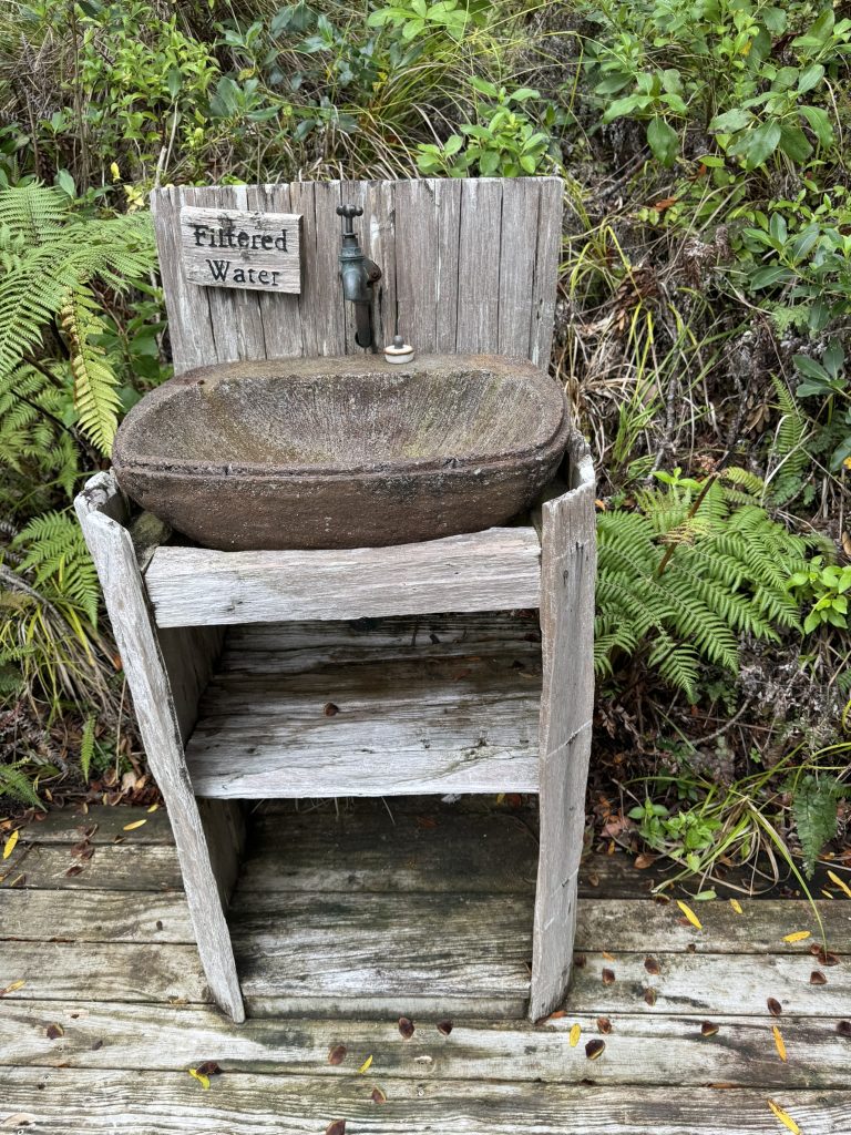 Further along, seating made from the same trees is appropriately placed for the visitors pleasure…and filtered water is available for parched throats.